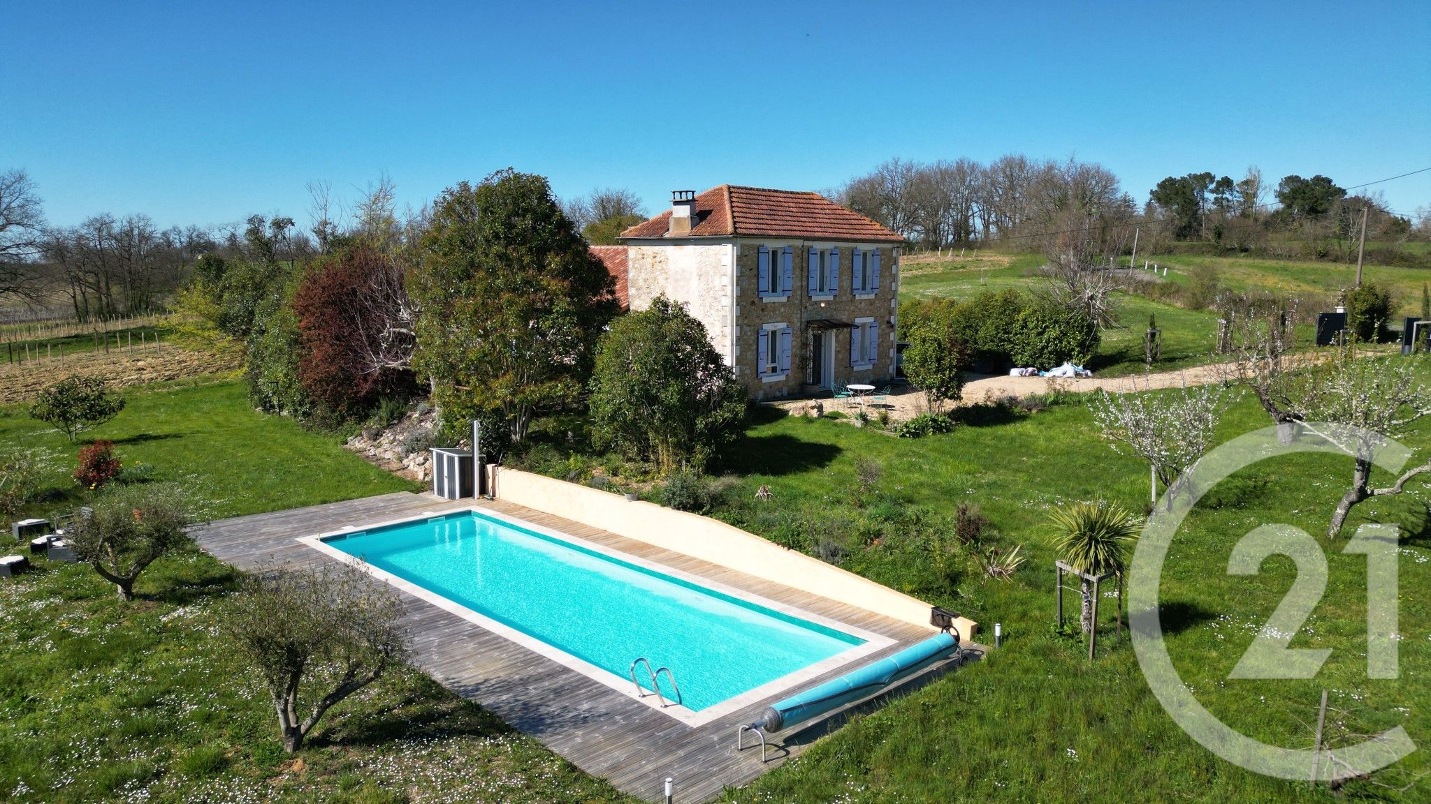 Cette maison en pierre de 145m², prête à emménager, offre quatre chambres et un espace de vie généreux, dont une cuisine de 14m², un salon de 13m² et une salle à manger de 21m², ainsi qu'une salle d'eau et deux WC. Un vrai atout: une piscine privée pour profiter des beaux jours, complétée par deux garages (31m² et 27m²) qui assurent un stationnement aisé. Au quotidien, vous bénéficierez d'un cadre calme et familial.
